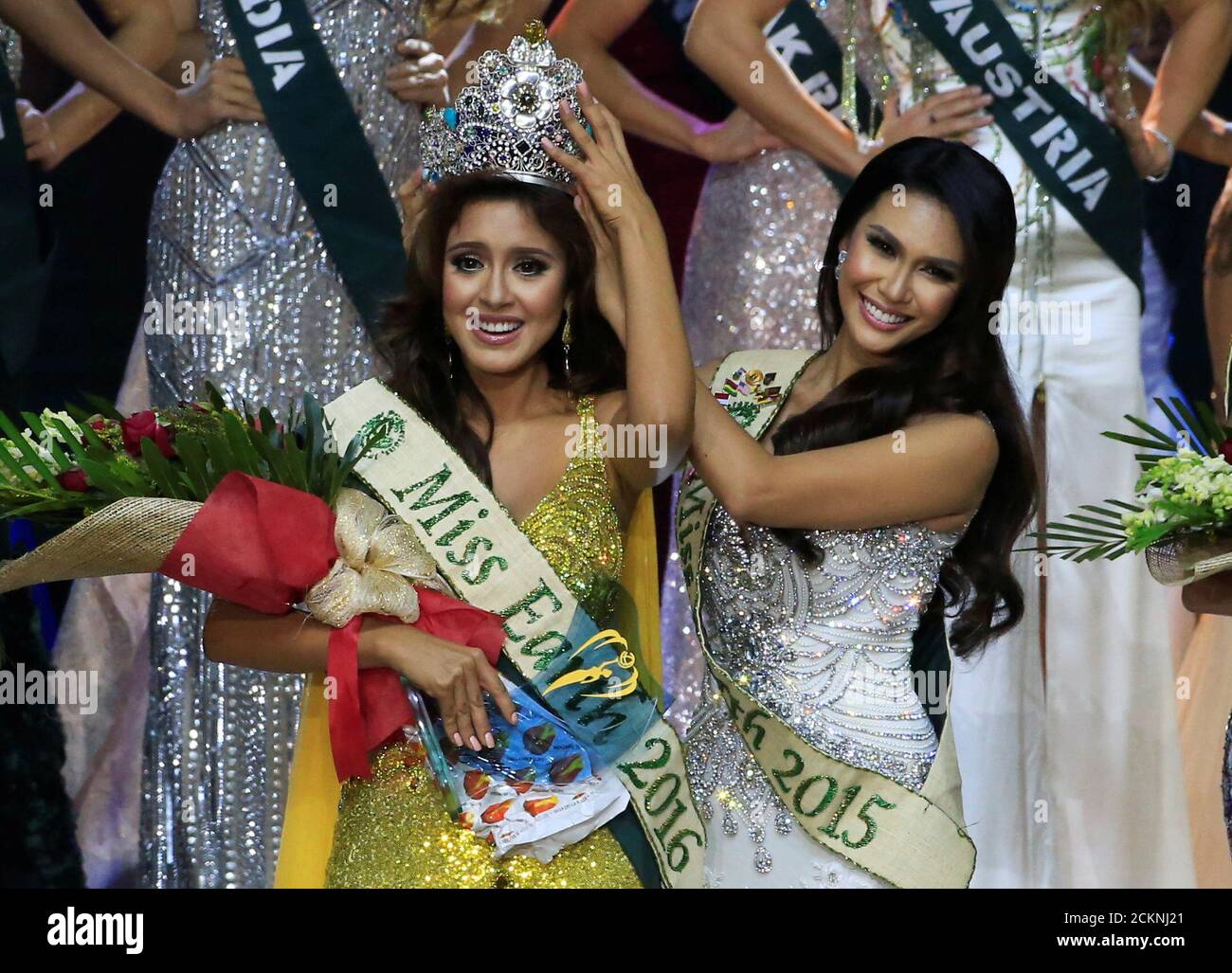 Miss Earth 2015 Angelia Ong R Of The Philippines Crowns This Year S Miss Earth Katherine Espin Of Ecuador During The Miss Earth 2016 International Coronation Night At A Mall In Pasay City